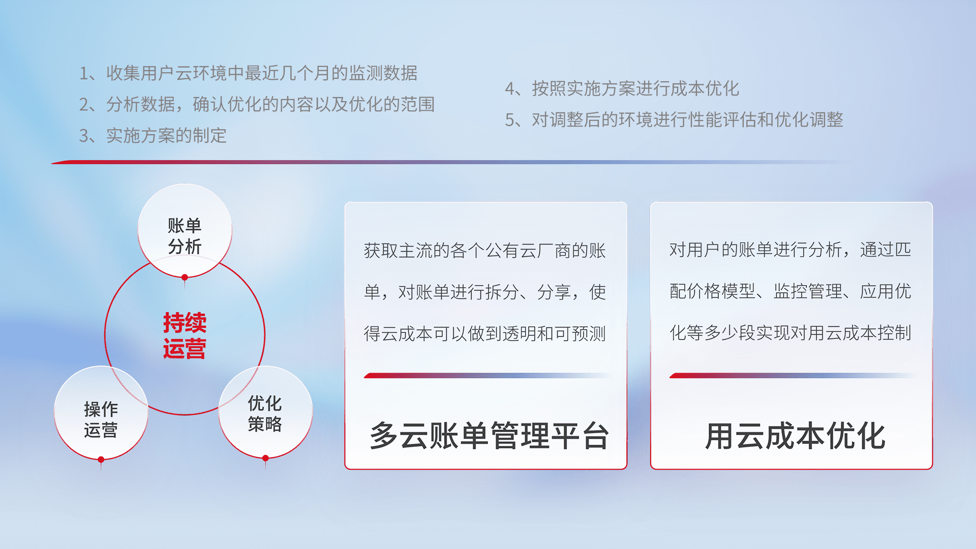 监控业务系统资源开销,,对资源的消耗精确计量,,,实现费用的透明化管理,,,,不断提升资源使用率,,,,调整资源购买方式,,,,降低资源费用成本,,用云成本可预测、、、、用云费用可优化,,,,云资源配额有据可依。。
